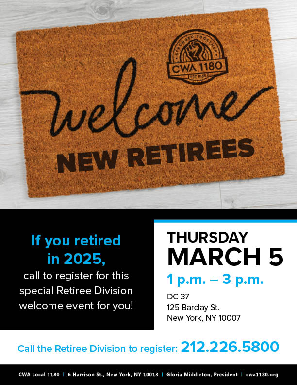 | Tues. 2/17 | IN-PERSON Review of Online Lessons / Q&A | 6 Harrison St. Call the Retiree Division to reserve your spot today: 212.226.5800 |